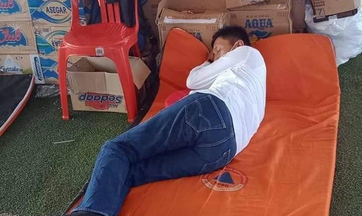 Viral di media sosial (medsos) foto bupati bolsel tidur di bawah tumpukan dus air mineral di tenda pengungsian korban banjir tanpa mengenakan selimut dan bantal tidur.