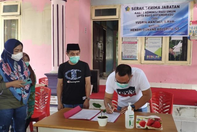 Jumat (4/9) pihak Rumah Sakit Umum Daerah (RSUD) Kota Kotamobagu langsung menggelar serah terima jabatan (Sertijab) Kepala Bagian (Kabag) Administrasi Umum dari pejabat sebelumnya Yusrin Mantali, S.Kom kepada Hendri Dunand Kolopita, ST.