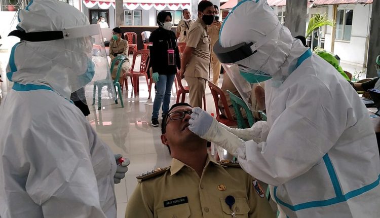 BERANDAKOTA—Sejumlah Aparatur Sipil Negara (ASN) di lingkungan Pemerintahan Kota-Kotamobagu menjalin Swab Test yang dilakukan oleh Dinas Kesehatan (Dinkes) Kotamobagu di AULA Kantor Walikota.