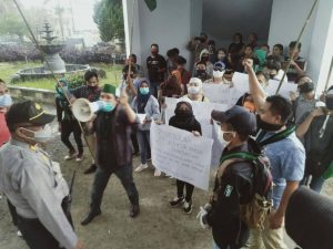 BERANDAKOTA—Puluhan pemuda yang tergabung dalam Himpunan Mahasiswa Islam (HMI) Cabang Bolaang Mongondow Raya (BMR) menyampaikan aspirasinya ke Kantor DPRD Kotamobagu, Kamis (8/10).