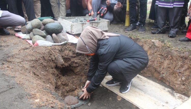 BERANDAKOTA- Wali Kota Kotamobagu, Ir. Hj Tatong Bara, hadiri acara peletakan batu pertama pembangunan Pesantren Thafizh Daarul Qur’an Ayyastiyah di Desa Bungko Kecamatan Kotamobagu Selatan, Senin (9/11).