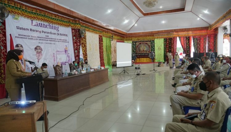 BERANDAKOTA-Pemerintah Kota Kotamobagu melalui Badan Pengelolaan Keuangan Daerah (BPKD) meluncurkan Aplikasi Sistem Informasi Barang Persediaan (Si Baper). Aplikasi ini di-launching Wali Kota Tatong Bara untuk memperkuat sistem kontrol barang persediaan di lingkup Pemerintah Kotamobagu, Selasa (11/20) di aula rumah dinas wali kota.