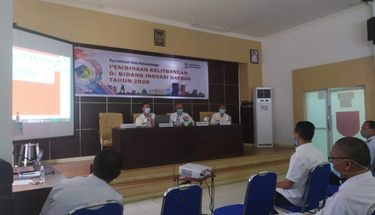 BERANDAKOTA- Pemerintah Kota (Pemkot) Kotamobagu melalui Badan Perencanaan Pembangunan Penelitian dan Pengembangan Daerah (Bappelitbangda) menggelar kegiatan Pembinaan Kelitbangan Bidang Inovasi Daerah tahun 2020, Rabu (11/20) di ruang rapat Kantor Bappelibangda Kotamobagu.