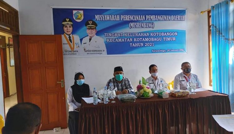 BERANDAKOTA-Pelaksanaan Musyawarah Perencanaan dan Pembangunan (Musrenbang) tingkat Kelurahan mulai digulir di Kota Kotamobagu. Ini dibuktikan dengan digelarnya Musrenbang Kelurahan Kotobangon Kecamatan Kotamobagu Timur, pada Rabu (20/01).
