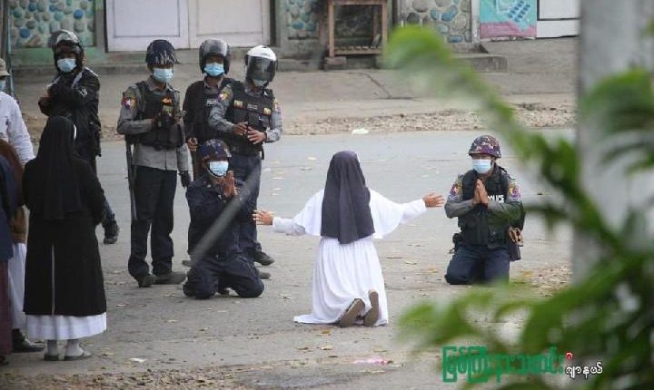 Biarawati Berlutut di Hadapan Polisi Myanmar Minta Hentikan Kekerasan