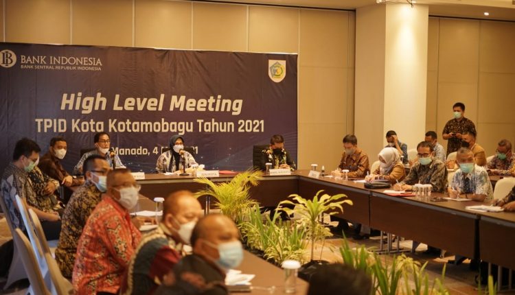 BERANDAKOTA – Pemerintah Kota (Pemkot) Kotamobagu bersama Bank Indonesia (BI) menggelar High Level Meeting (HLM) Tim Pengendali Inflasi Daerah (TPID) Kota Kotamobagu tahun 2021, Selasa (04/05) pagi, di Hotel Four Points, Manado.