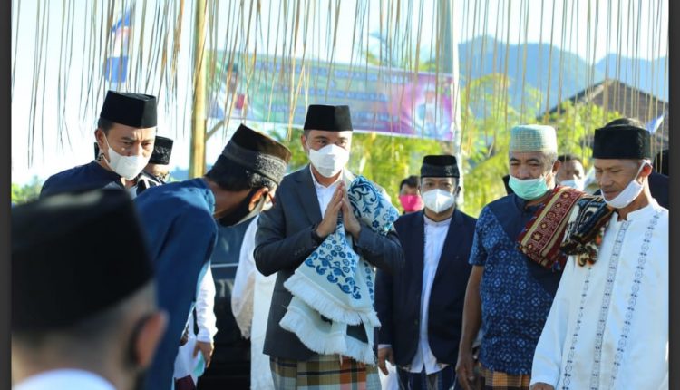 BERANDAKOTA-Pasangan Bupati dan Wakil Bupati (Wabup) Bolaang Mongondow Timur (Boltim), Sam Sachrul Mamonto dan Oskar Manoppo (SSM-OPPO), mengikuti shalat Idul Fitri untuk pertama kali sejak dilantik akhir Februari 2021 lalu.