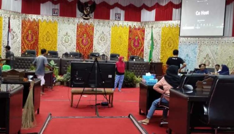 Melalui pantauan Berandakota sejak Sabtu (22/05) hingga Minggu (23/05) malam, ASN serta THL melakukan pembenahan dan mendekorasi ruangan Paripurna.