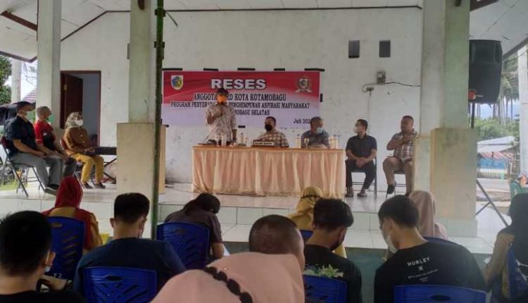 BERANDAKOTA – Anggota Dewan Perwakilan Rakyat Daerah (DPRD) Kota Kotamobagu untuk dapil Kotamobagu Selatan Rewi Daun menyerap aspirasi warga melalui reses yang bertempat di sekretariat Remaja dan Pemuda Kelurahan Motoboi Kecil (Mocil), Minggu (04/07).