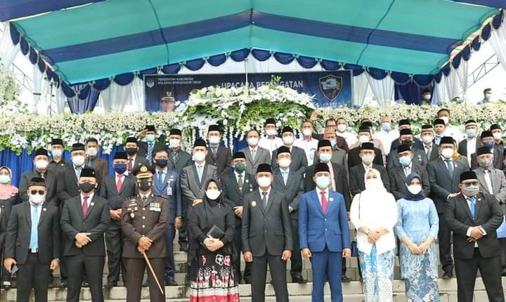 Dalam sambutannya, Bupati tak lupa menyapa tokoh pemekaran, seperti Marlina Moha Siahaan, dan mantan Bupati Sehan Landjar.