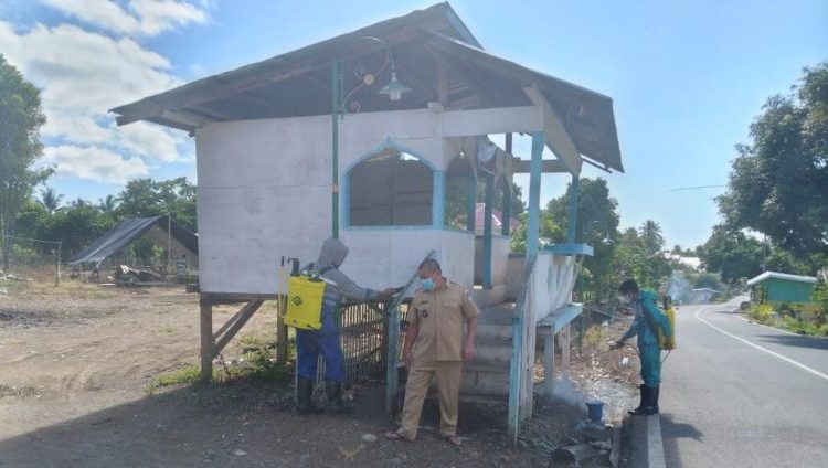 “Kami turun bersama perangakat desa dan beberapa masyarakat, untuk menyasar Lokasi-lokasi yang banyak di datangi orang, seperti kios, warung, tempat ibadah, dan rumah rumah warga untuk di semprot, dan sekaligus pembersihan halaman jalan trans,” ujar Sangadi.