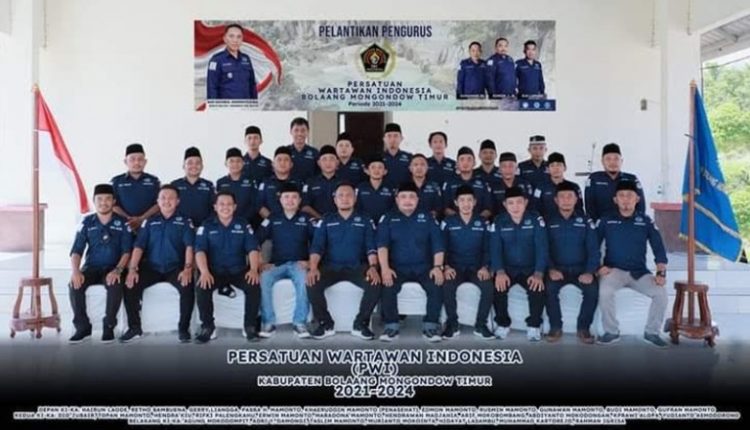 BERANDAKOTA – Pengurus Wartawan Indonesia (PWI) Provinsi Sulawesi Utara (Sulut), melantik susunan pengurus PWI Kabupaten Bolaang Mongondow Timur (Boltim) masa bakti 2021-2024.