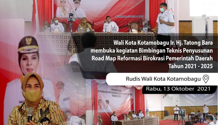 BERANDAKOTA – Wali Kota Kotamobagu Tatong Bara secara resmi membuka kegiatan Bimbingan Teknis (Bimtek) Penyusunan Road Map Reformasi Birokrasi Pemerintah Daerah Kota Kotamobagu tahun 2021-2025 pada, Rabu (13/10).