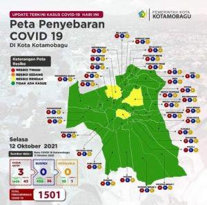 Hal itu bisa dilihat lewat peta penyebaran Covid-19 yang dirilis Dinas Kesehatan Kotamobagu pada Selasa (12/10) kemarin.