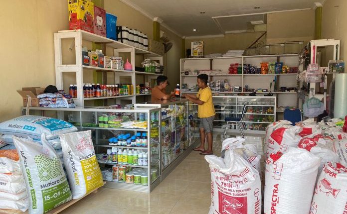 “Di sini kita menjual berbagai macam kebutuhan, mulai dari pupuk non subsidi, pestisida, peralatan akuarium, peralatan pancing, pakan ternak, obat-obatan serta ada juga ikan hias dan lain-lain,” katanya.