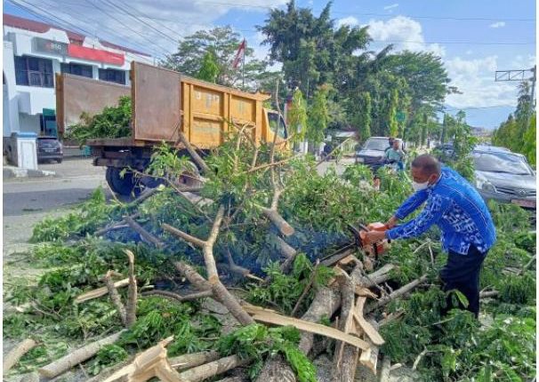 DLH Kotamobagu Lakukan Penebangan Pohon Peneduh di Jalan Ahmad Yani
