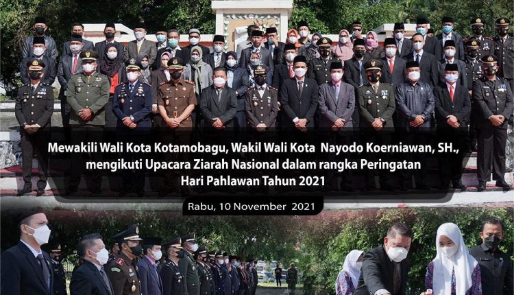 BERANDAKOTA —Mewakili Wali Kota Kotamobagu, Wakil Wali Kota Kotamobagu Nayodo Koerniawan mengikuti Upacara Ziarah Nasional dalam rangka peringatan Hari Pahlawan yang dilaksanakan di Taman Makam Pahlawan (TMP) Mongkonai, Rabu (10/11) pagi.