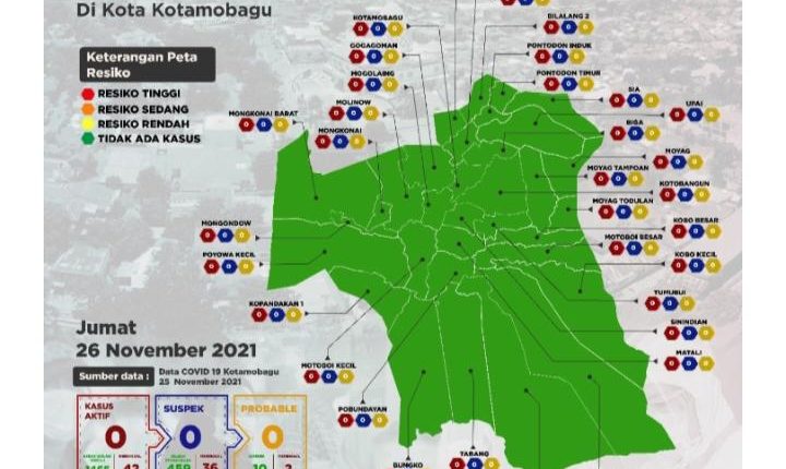 “Hari ini (Jumat, 26 November 2021), kita (Kota Kotamobagu) masih zona hijau,” ujarnya.