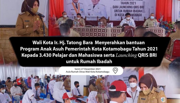 BERANDAKOTA – Wali Kota Kotamobagu Tatong Bara secara resmi menyerahkan bantuan anak asuh jenjang SD, SMP, SMA/SMK dan perguruan tinggi tahun 2021, yang bertempat di aula Kantor Wali Kota Kotamobagu, Senin (27/12).