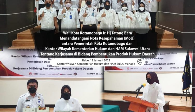 Dalam hal ini Kepala Bagian Hukum Setda Kota Kotamobagu Rendra Dilapanga, mengatakan bahwa nota kesepahaman memuat tentang kerjasama Pembentukan Produk Hukum Daerah.
