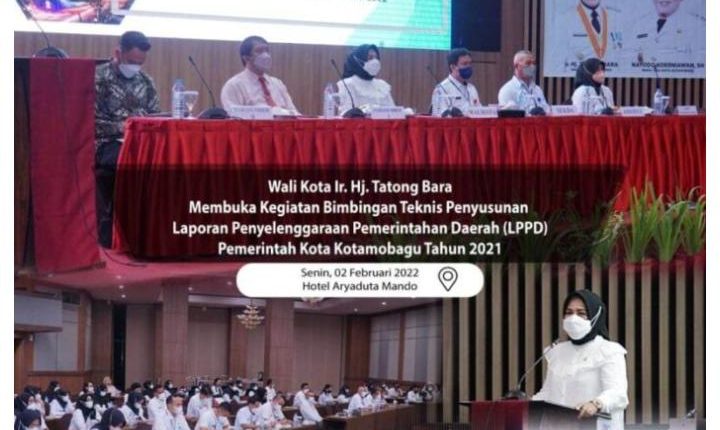 BERANDAKOTA – WaliKota Kotamobagu Tatong Bara  membuka secara resmi kegiatan Bimbingan Teknis (Bimtek) Penyusunan Laporan Penyelenggaraan Pemerintahan Daerah (LPPD) Pemerintah Kota Kotamobagu Tahun 2021 di Ballroom Hotel Aryaduta Manado Sulawesi Utara (Sulut).Rabu (2/02)