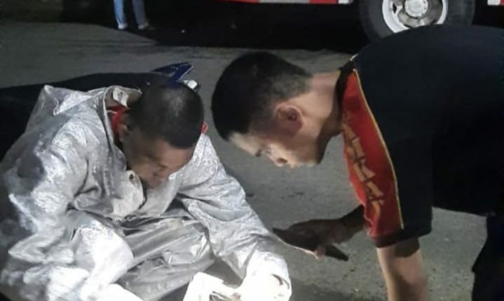 Kepala Bidang (Kabid) Damkar Kotamobagu, Erwin Sugeha bersama tim langsung membasmi sarang tawon jenis Vespa di sekitaran Lapangan Boki Hotinimbang Kota Kotamobagu.