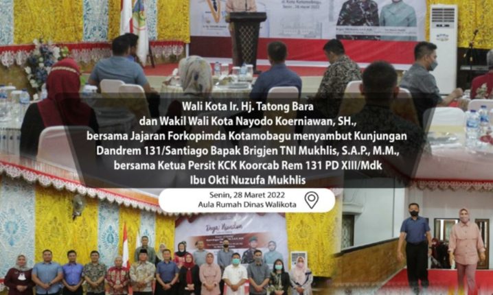 Wali Kota Kotamobagu dalam sambutannya menyampaikan ucapan Selamat Datang di Kota Kotamobagu disertai ucapan terima kasih yang sebesar – besarnya dan penghargaan yang setinggi – tingginya kepada Komandan Korem 131 / Santiago bersama Ketua Persit Kartika Chandra Kirana Koorcab Rem PD 131 XIII / Merdeka, Okti Nuzufa Mukhlis, yang telah berkenan untuk meringankan langkah melaksanakan kunjungan kerja di Kota Kotamobagu.