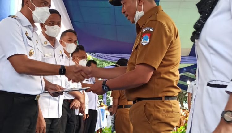 BERANDAKOTA – 154 orang Calon Pegawai Negeri Sipil (CPNS) dan 28 Pegawai Pemerintah dengan Perjanjian Kerja (P3K), Menerima  Surat Keputusan (SK) yang diserahkan langsung oleh Bupati Bolaang Mongondow Timur (Boltim) Sam Sachrul Mamonto, Rabu (30/3).