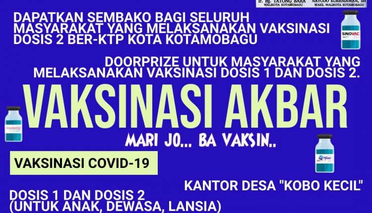 Dari informasi yang dipublikasikan kepada masyarakat setempat oleh pihak Pemerintah Desa Kobo Kecil, bahwa jenis vaksin yang akan digunakan pada kegiatan ini adalah semua jenis vaksin.