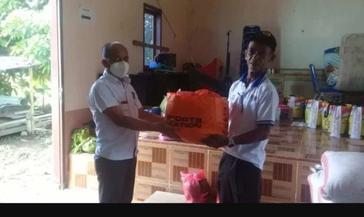 Bantuan dari Dispora Boltim itu diserahkan langsung Kepala Dispora Sogol Mamonto dan diterima Sangadi Motongkad Utara.