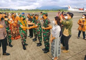 BERANDAKOTA – Bupati Bolaang Mongondow Timur (Boltim) Sam Sachrul Mamonto menyambut kedatangan Kepala Staf Angkatan Darat (KASAD), Jenderal TNI Dudung Abdurachman, di Wisma Negara Bumi Beringin Manado, Minggu (10/4).