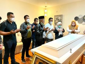 BERANDAKOTA – Bupati Bolaang Mongondow Timur (Boltim) Sam Sachrul Mamonto melayat jenazah Almarhum Hi. Herson Mayulu S.Ip yang berada di Human Remains Transit Lounge gedung Duty Free terminal kargo bandara soekarno Hatta Cengkareng, Banten, pada Minggu malam (17/4).