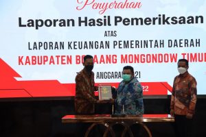BERANDAKOTA – Pemerintah kabupaten Bolaang Mongondow Timur (Boltim) berhasil mempertahankan opini wajar tanpa pengecualian (WTP) ke-9 kalinya atas laporan keuangan pemerintah daerah (LKPD) tahun 2021, dari badan pemeriksa keuangan Republik indonesia (BPK RI).
