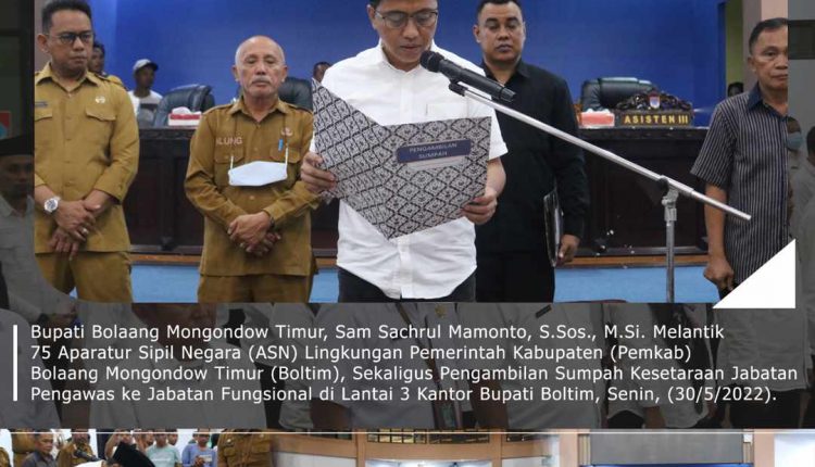 BERANDAKOTA – Sebanyak 79 pejabat fungsional di lingkungan pemerintah Kabupaten Bolaang Mongondow Timur (Boltim) dilantik. Senin 30 Mei 2022 Kemarin. Di aula kantor bupati.