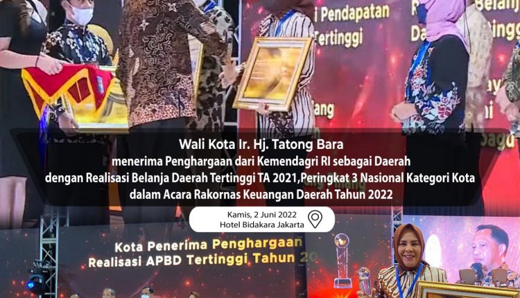 Kotamobagu Raih Peringkat 3 Penganugerahan Realisasi APBD Pada Rakornas Keuangan Daerah Tahun 2022