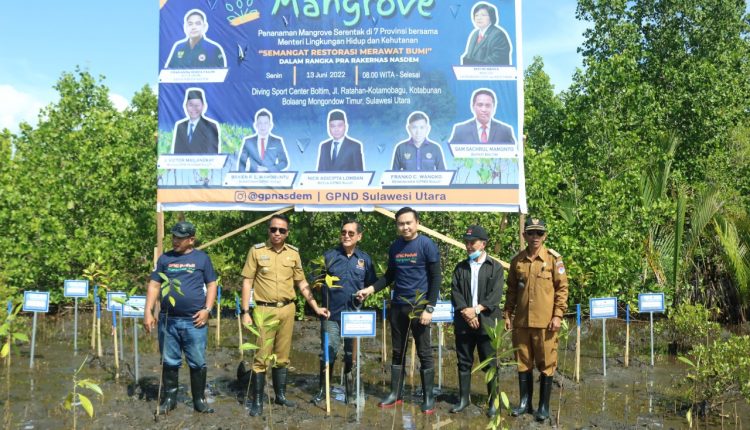 Penanaman Mangrove tersebut merupakan, kegiatan yang digelar oleh Kementerian Lingkungan Hidup dan Kehutanan (KLHK) bekerjasama dengan PP Garda Pemuda Nasdem dan dilakukan secera serentak di tujuh provinsi yang ada di indonesia.
