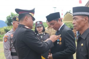 Diketahui upacara tersebut merupakan rangkaian acara memperingati Hari Bhayangkara ke-76. Bupati juga didampingi Ketua TP PKK Ny. Seska Ervina Budiman.