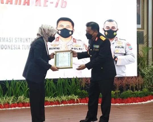 BERANDAKOTA – Wali Kota Kotamobagu, Ir. Hj. Tatong Bara, menerima Penghargaan pada Acara Puncak Peringatan Hari Bhayangkara ke – 76 Tahun 2022, Atas Jasa dan Kontribusinya untuk membantu Polda Sulawesi Utara, Selasa 5 Juli 2022.