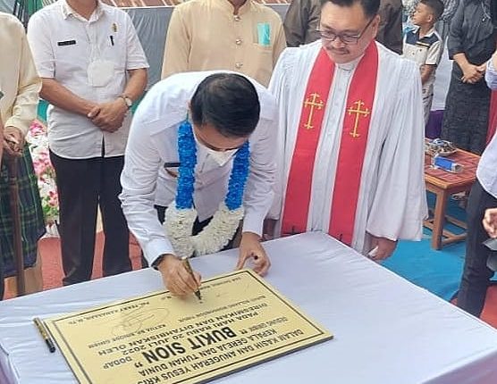 BERANDAKOTA – Bupati Kabupaten Bolaang Mongondow Timur (Boltim), Sam Sachrul Mamonto (SSM), menghadiri acara Pentahbisan dan Peresmian Gedung Gereja Jemaat Bukit Sion. Rabu 20 Juli 2022, di Desa Didap, Kecamatan Tutuyan.