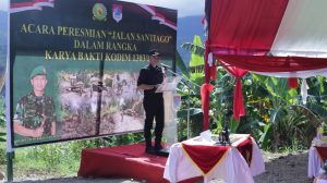 Usai mengikuti Vidcon, Bupati bersama Danrem meresmikan jalan Santiago yang merupakan jalan perkebunan di Desa Motongkad, Kecamatan Motongkad.