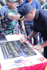Peresmian jalan perkebunan sepanjang 600 meter ini, ditandai penandatanganan prasasti yang dilanjutkan dengan pengguntingan pita.