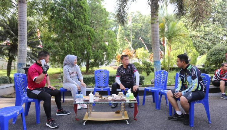 BERANDAKOTA —Wali Kota Kotamobagu, Ir. Hj. Tatong Bara, menerima kunjungan silaturahmi Danrem 131/Santiago, Brigjen.TNI. Mukhlis, S.A.P, M.M, Bersama Ketua Persit KCK Koorcab Rem 131 PD XIII/MDK, Ibu Okti N Mukhlis, di Rumah Dinas Wali Kota, Sabtu (13/8) pagi, setelah sebelumnya Danrem 131/Santiago bersama rombongan melakukan olahraga bersepeda di wilayah Kotamobagu.