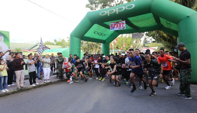 BERANDAKOTA —Wali Kota Kotamobagu, Ir. Hj. Tatong Bara melepas secara resmi peserta Lomba Lari 10 KM dan 5 KM yang dilaksanakan Kodim 1303 Bolaang Mongondow, Minggu (14/8) sore.