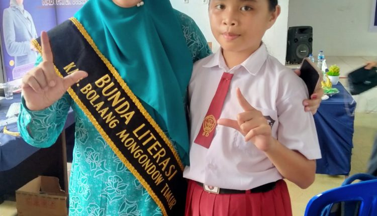 Lionyta hadir didampingi langsung Kepala Dinas Pendidikan dan Kebudayaan (Dikbud) Boltim, Yusri Damopolii dan Kepala SD Negeri Bangunan Wuwuk, Nortje Rita Marintja.