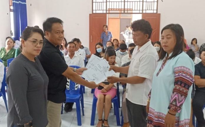 BERANDAKOTA – Dinas Kependudukan dan Pencatatan Sipil (Dukcapil) Kabupaten Bolaang Mongondow Timur (Boltim) melakukan pencetakan pencatatan sipil dan menyerahkan kepada 19 pasangan di wilayah Kecamatan Mooat, Jumat (16/9/2022) kemarin.