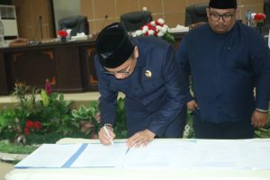 BERANDAKOTA – Bupati Boltim Sam Sachrul Mamonto S.Sos M.Si menghadiri paripurna penandatanganan nota kesepahaman kebijakan umum anggaran dan prioritas plafon anggaran sementara (KUA-PPAS) untuk perubahan tahun anggaran 2022, yang bertempat di Gedung DPRD Boltim, Jumat (16/9/2022) malam.