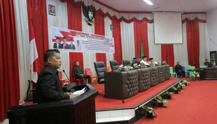 BERANDAKOTA – Wakil Wali Kota Kotamobagu Nayodo Koerniawan, SH menghadiri Rapat Paripurna Dewan Perwakilan Rakyat Daerah Kota Kotamobagu Dalam Rangka Pembicaraan Tingkat I Penyampaian Rancangan Peraturan Daerah (Ranperda) Tentang Anggaran Pendapatan dan Belanja Daerah Perubahan (APBDP) Kota Kotamobagu Tahun Anggaran 2022 dan Penyampaian Rancangan Peraturan Daerah Tentang Perizinan Berusaha di Daerah, Rabu (28/9) malam di Ruang Rapat Paripurna DPRD Jalan Paloko Kinalang Kota Kotamobagu.