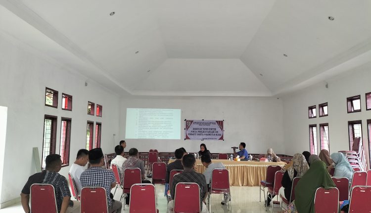 BERANDAKOTA – Bimbingan teknis (Bimtek) panitia pemilihan sangadi dan pembantu panitia pemungutan suara, di kantor aula desa Pontodon, Kamis (06/10).