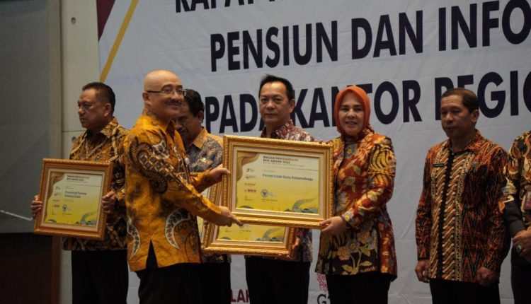 BERANDAKOTA – Wali Kota Kotamobagu Ir. Hj. Tatong Bara, menerima Penghargaan BKN Award Special Mention Pilot Project SIstem Informasi Aparatur Sipil Negara (SIASN) Tahun 2022, di sela acara Rapat Koordinasi dan Evaluasi Pelayanan Bidang Pensiun dan Informasi Kepegawaian Berbasis Digital, Rabu (12/10/2022).