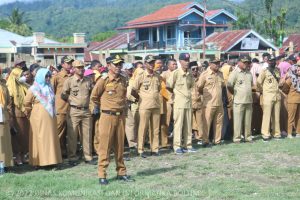 Apel kerja tersebut dihadiri pejabat tinggi di lingkungan Pemerintah Kabupaten Boltim, para ASN dan THL, Camat, Sangadi dan Aparat Desa.
